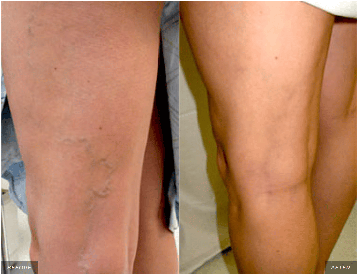 With each treatment, up to 80% of visible varicose and spider veins will be destroyed. It may take a few treatments to reach optimal results.